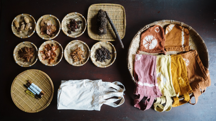 ▍Photo 5. Plant dye handicrafts displayed at the Liugui Xizaijiao cultural sharing space. Photo credit to: Mei-Hui Chen.