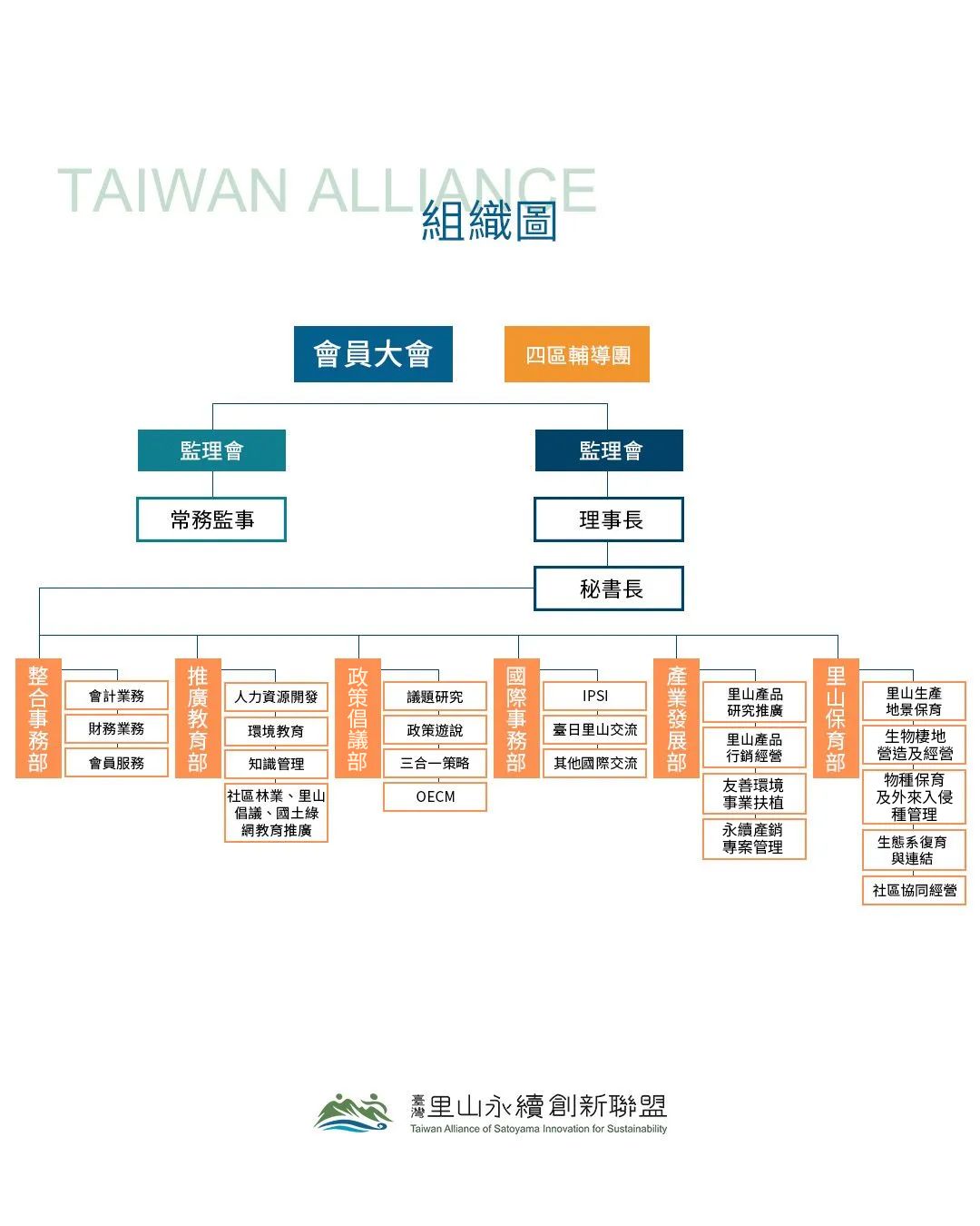 Based on its mission and objectives, the alliance has six departments: Integration Affairs, Extension Education, Policy Initiatives, International Affairs, Industrial Development, and Satoyama Conservation. Each department is led by a core working group composed of conveners.