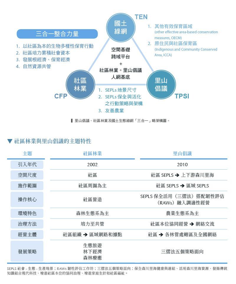 2022-2030 里山倡議、社區林業及 國土生態綠網的三合一 策略架構
